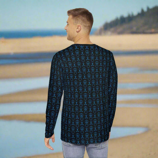 Turquoise Men's Long Sleeve Peace Love Paddleboard Pattern