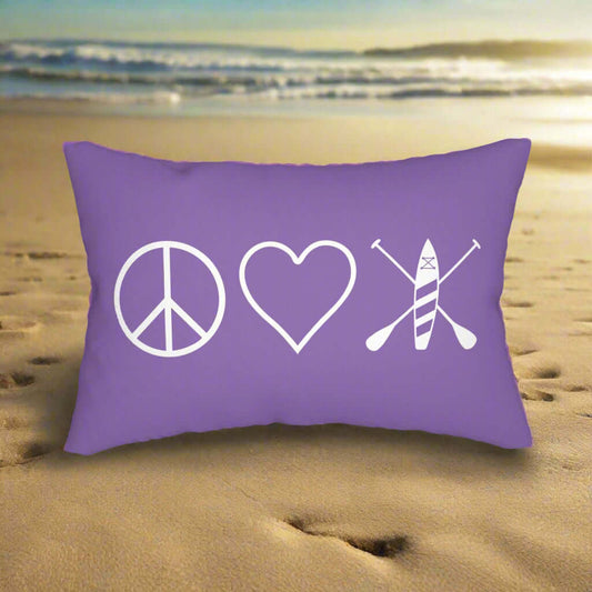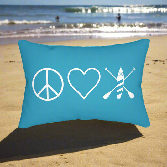 Turquoise Peace Love Paddleboard Lumbar Pillow