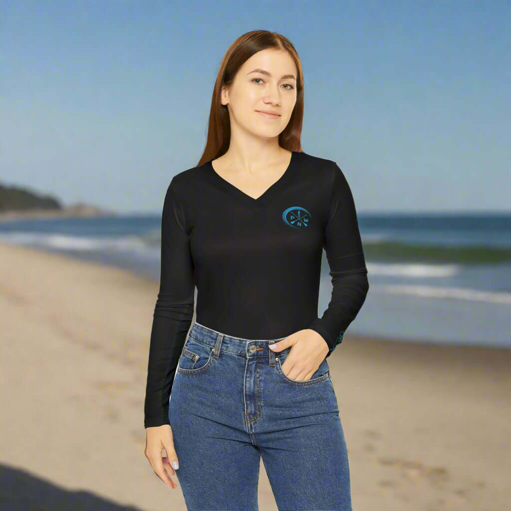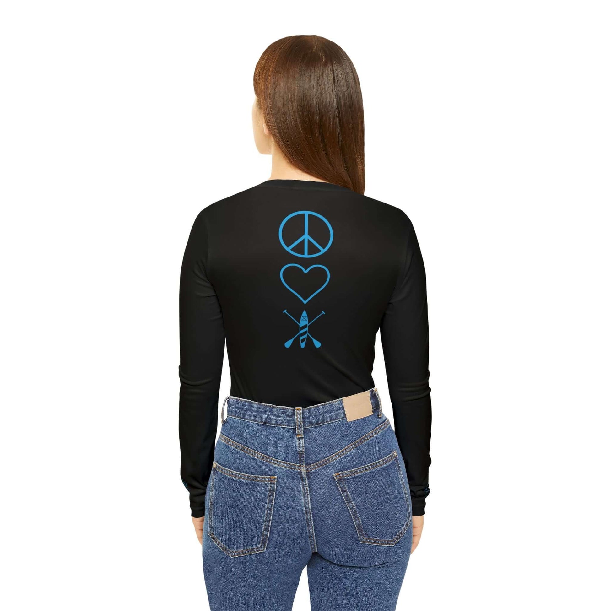 Turquoise Women's Peace Love Paddleboard Long Sleeve V-neck Shirt (